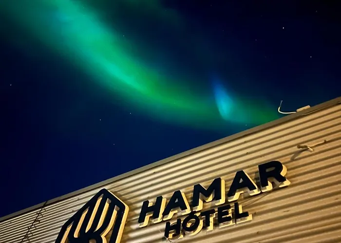 Hotel Hamar is a 3-star retreat-style hotel built on a golf course, offering unique leisure opportunities and a restaurant serving traditional Icelandic cuisine. Guests can relax in outdoor hot tubs heated by geothermal energy and enjoy free WiFi throughout the property.