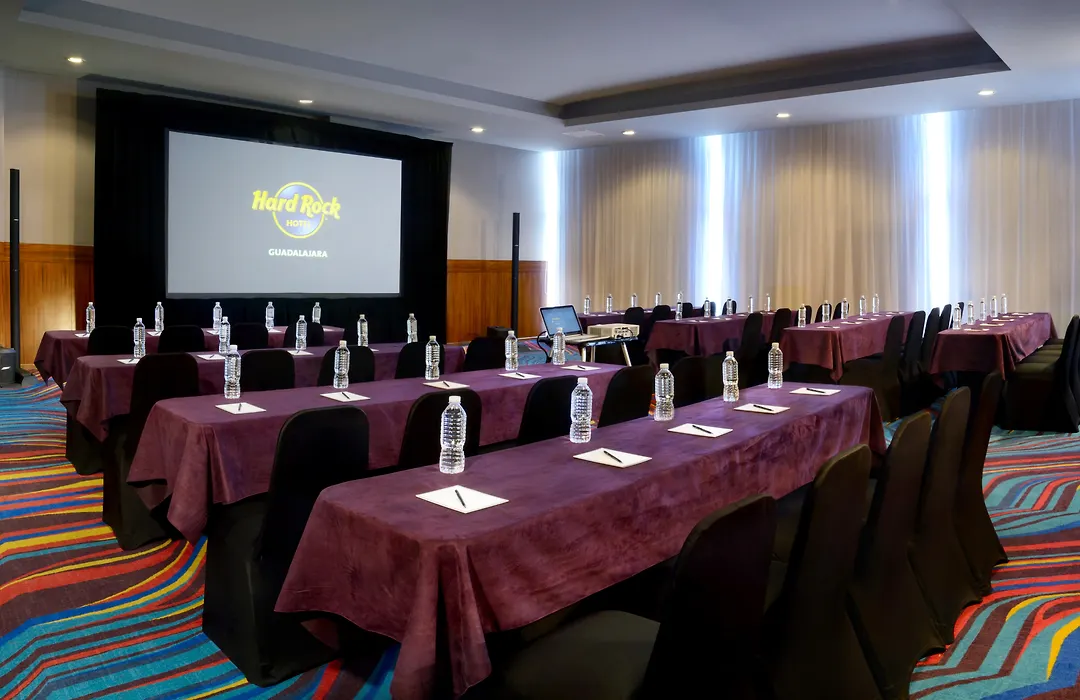 Hard Rock Hotel Guadalajara features over 18000 square feet of event space suited for meetings and social gatherings, accommodating up to 2000 guests. The Grand Ballroom and seven additional versatile rooms offer modern amenities ideal for corporate events. The hotel's concierge service can assist with local transportation and activity arrangements.