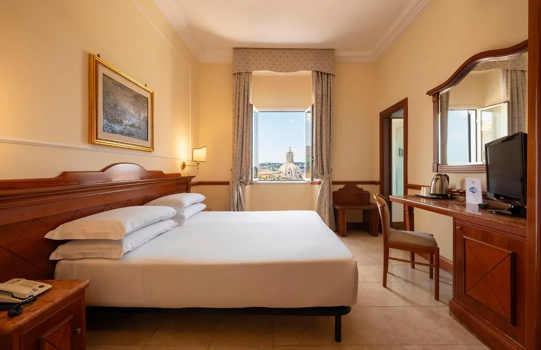 Hotel Hiberia is situated close to notable landmarks such as the Coliseum, just a 5-minute walk away. Public transportation is easily accessible, with bus stops and metro stations nearby, offering convenient travel to various city highlights, including the Vatican City and the Trevi Fountain.