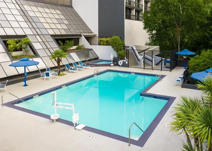 Hilton Bellevue, a 4-star hotel with a rating of 7.9/10 on Booking.com, offers expansive meeting spaces and modern amenities. Guests can enjoy on-site dining at Solarium Kitchen and Bar and a seasonal outdoor heated pool.
