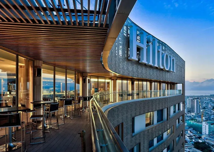Hilton Da Nang, a 5-star hotel rated 8.5/10 on Booking.com, features a restaurant, outdoor swimming pool, fitness center, and bar. The hotel is noted for its contemporary design and amenities, catering to both leisure and business travelers.