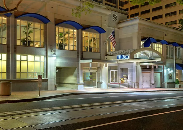Hilton Portland Downtown, a 4-star hotel rated 7.7/10 on Booking.com, offers modern accommodations in downtown's vibrant financial and entertainment districts. Amenities include a restaurant, fitness center, and business facilities.