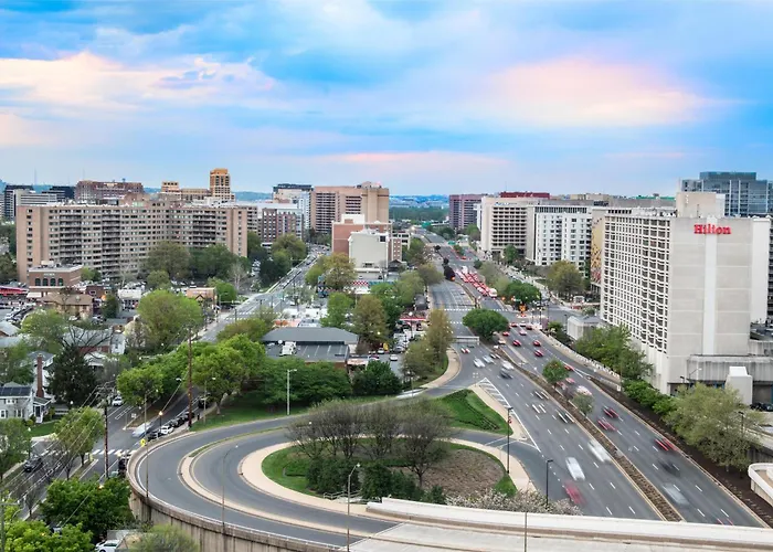 Hilton Arlington National Landing, a 4-star Arlington hotel with a 7.9/10 rating, offers a range of amenities including a free airport shuttle service to Ronald Reagan National Airport and multiple meeting spaces. Guests can enjoy local dining options and shopping within walking distance.