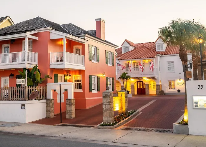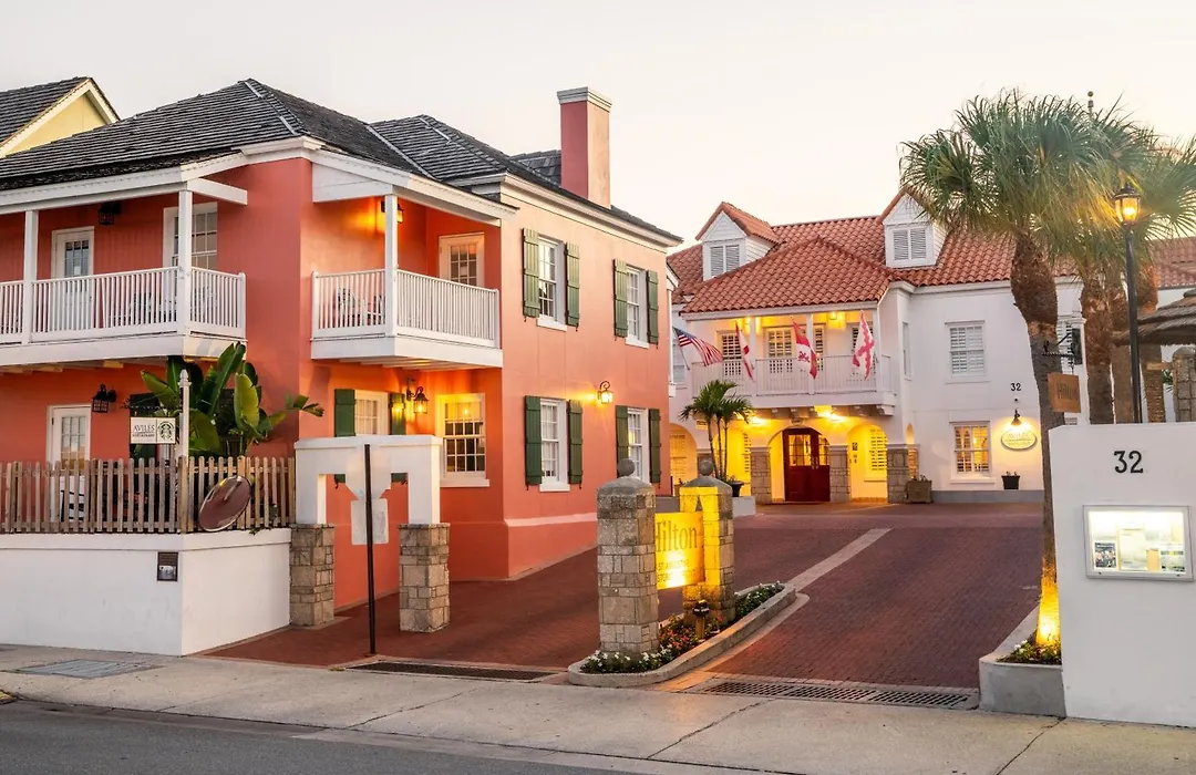 Hilton Saint Augustine Historic Bayfront, a 4-star hotel rated 8.4/10 on Booking.com, features Spanish Colonial-inspired architecture complemented by modern amenities. The hotel offers a rooftop terrace, outdoor pool, and concierge services for guest convenience.