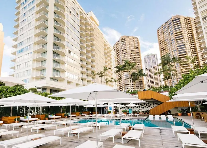 Hilton Vacation Club The Modern Honolulu, a 3-star accommodation with an 8.3/10 rating, offers amenities such as an outdoor pool, fitness center, and on-site dining. This hotel is situated in Waikiki, known for its surf beaches and vibrant culture.