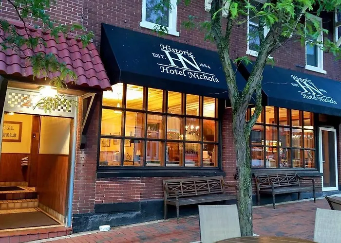 Historic Hotel Nichols is conveniently located near parking options, with designated public lots available 24/7. The hotel welcomes pets with proper documentation, making it suitable for travelers with dogs.
