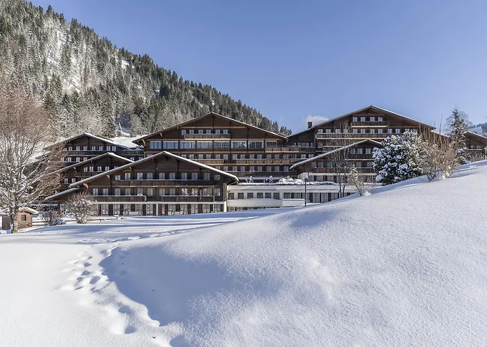 Huus Gstaad, a 4-star hotel with an 8.7/10 rating, features modern Alpine design and offers various amenities for relaxation and adventure. Enjoy a wellness area covering over 21527.8 ft², a dedicated kids' club, and multiple dining options showcasing local cuisine.