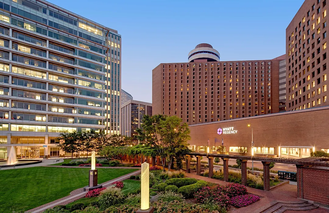 Hyatt Regency Indianapolis is within walking distance of various landmarks such as the Indiana World War Memorial and Monument Circle, with easy skywalk access to over 200 shops and entertainment options. Public transportation includes bus services accessible within a 2-minute walk. The hotel features 24-hour reception and concierge services to assist guests during their stay.