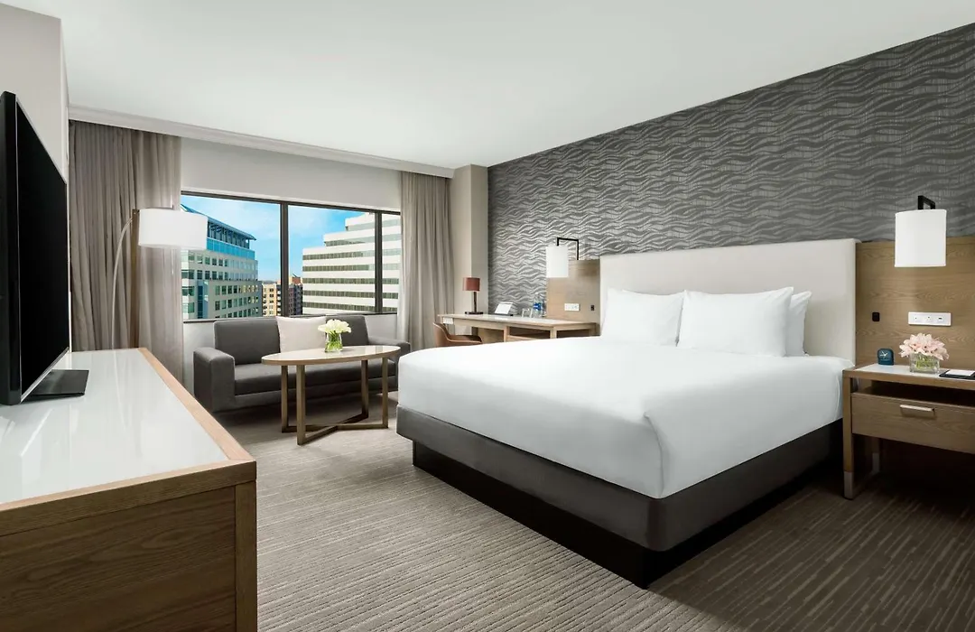 The spacious guestrooms at Hyatt Regency Bethesda showcase the Hyatt Grand Bed, premium bedding, and laptop-compatible safes. Each room is equipped with air conditioning, a flat-screen TV, and thoughtful touches like laptop-friendly workspaces.