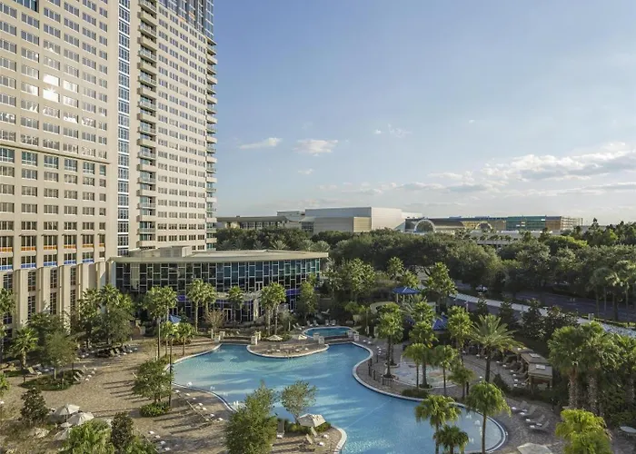 Hyatt Regency Orlando, a 4-star hotel rated 8.5/10 on Booking.com, features a full-service spa, multiple dining options, and expansive pools. This family-friendly accommodation offers direct access to the Orange County Convention Center.