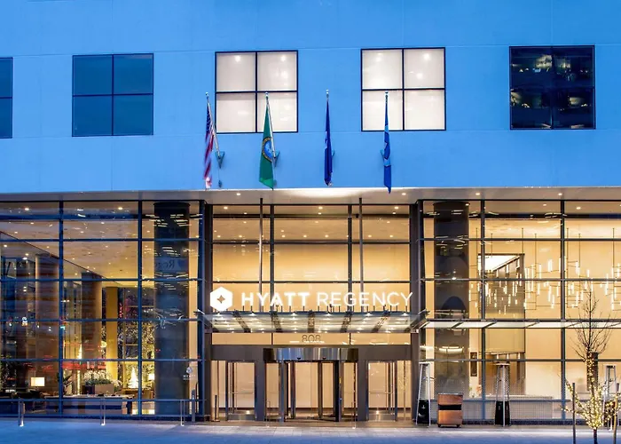 Hyatt Regency Seattle, a 4-star hotel rated 8.8/10 on Booking.com, features modern accommodations and extensive meeting facilities in the heart of downtown Seattle. Guests benefit from amenities such as free WiFi, room service, and a 24-hour fitness center outfitted with state-of-the-art equipment.