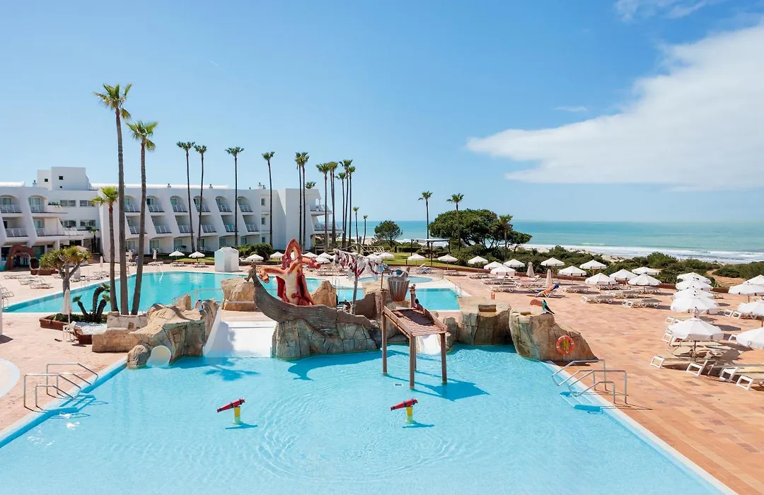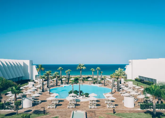Iberostar Waves Royal Andalus is a family-friendly 4-star hotel with features such as a golf course, a spa area, children's facilities, and direct access to the award-winning La Barrosa Beach, known for its sustainability. Rated 8.7/10 on Booking.com, it provides diverse culinary options and live cooking demonstrations.