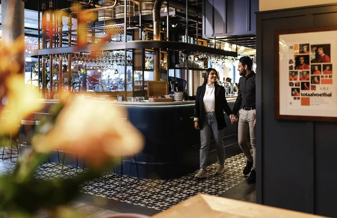 The hotel offers two on-site dining options, including Bar Rendez-vous and a cafeteria-style breakfast buffet. Nearby popular dining spots include Van Dobben and Pancake Bakery, known for its extensive pancake menu.