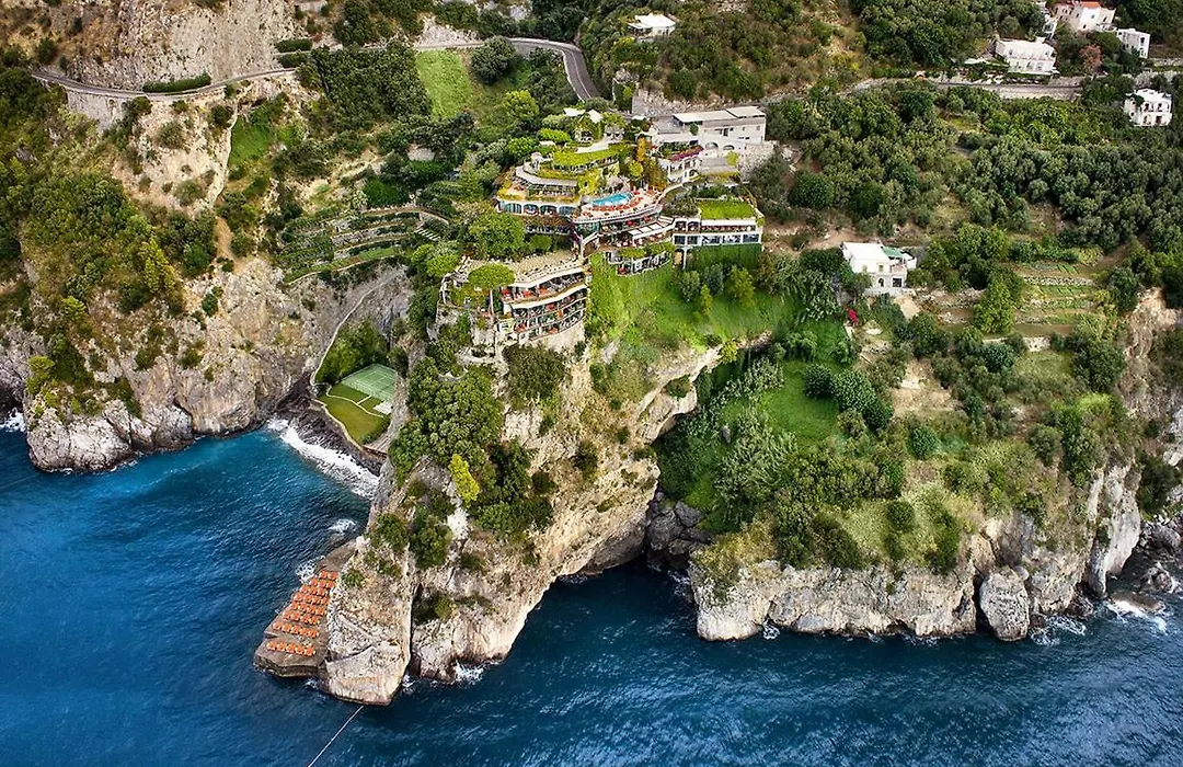 Il San Pietro Di Positano, a 5-star luxury hotel with a 9.7/10 rating on Booking.com, offers exquisite accommodations, fine dining, and panoramic sea views. It features a private beach, tennis court, swimming pool, and an organic garden utilized in its Michelin-starred cuisine.