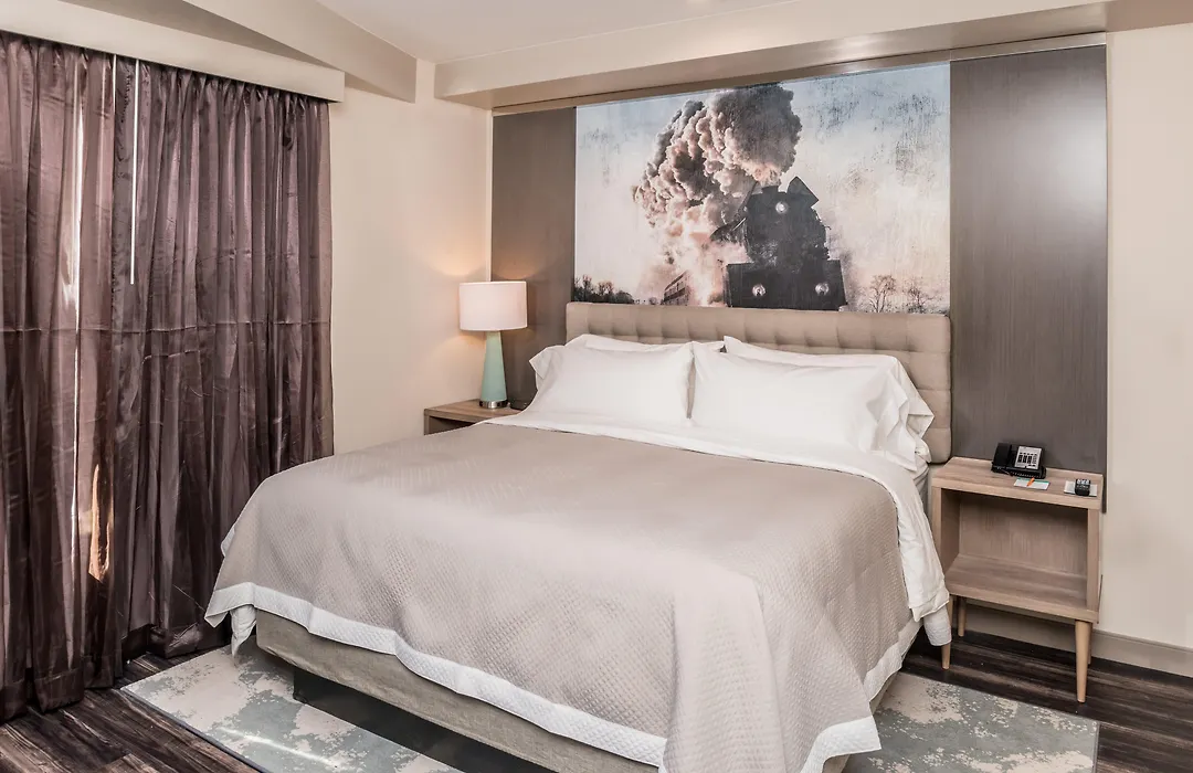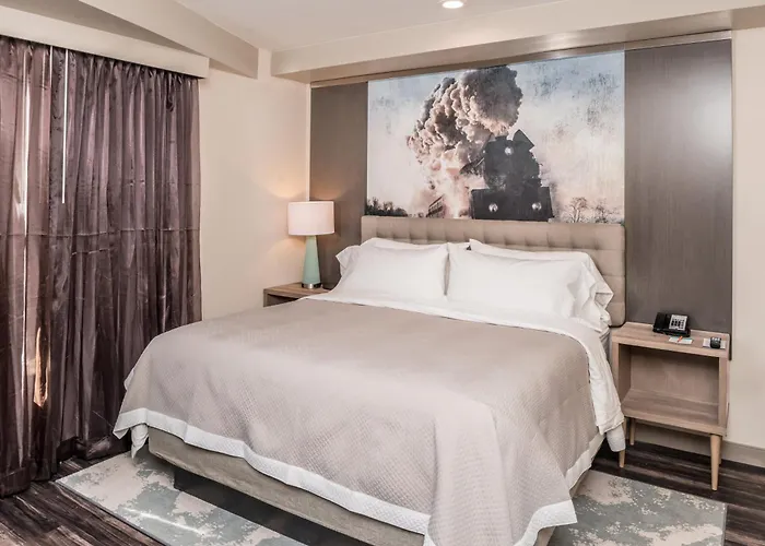 Rooms at Hotel Indigo Frisco feature modern decor with vibrant touches, offering a flat-screen TV, mini-refrigerator, and a comfortable work desk. Options include Standard Rooms, Premium Rooms, and spacious Suites with separate living areas. All accommodations are equipped with complimentary Wi-Fi.