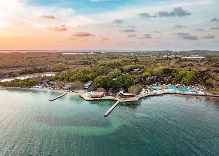 Hotel Isla Del Encanto provides round-trip boat transportation from the Bodeguita dock in Cartagena, approximately one hour away. The hotel is also close to landmarks such as Corales del Rosario National Park and nearby beaches including Bendita Beach and Cholon.