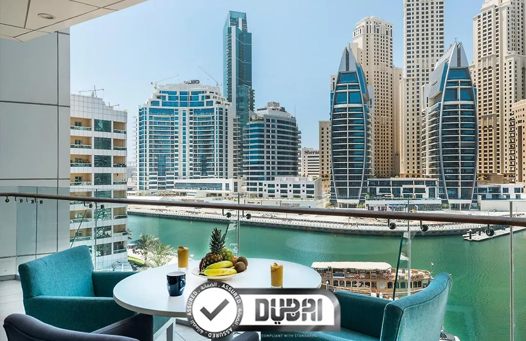 Jannah Marina Hotel Apartments, a 4-star Dubai hotel with an 8.1 Booking.com rating, offers spacious accommodations and a fully equipped kitchen, making it suitable for both short and long-term stays. The property features a host of amenities including free Wi-Fi, an outdoor pool, and round-the-clock in-room dining.