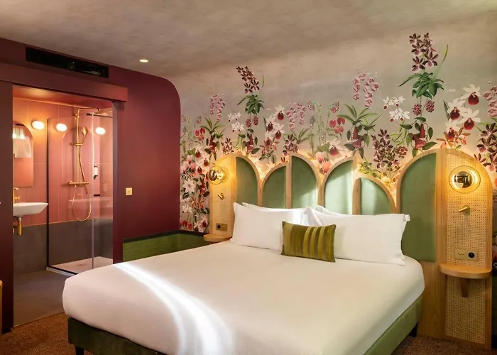 Hotel Jardin De Cluny offers a boutique experience in the lively Latin Quarter, characterized by elegant neo-art deco decor and a commitment to sustainability. This 4-star Paris hotel features 40 non-smoking rooms, a buffet breakfast with organic products, and air conditioning.