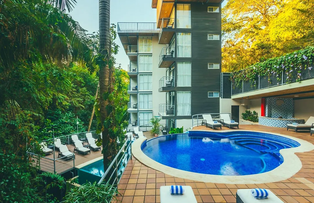 Leisure activities include two scenic outdoor pools adjacent to the rainforest, where guests can relax and observe wildlife. The hotel's central location provides access to local attractions, including Manuel Antonio National Park, only 5 minutes away by car. Adventure seekers can enjoy zip-lining, hiking, and world-class beaches like Playitas, half a mile away.