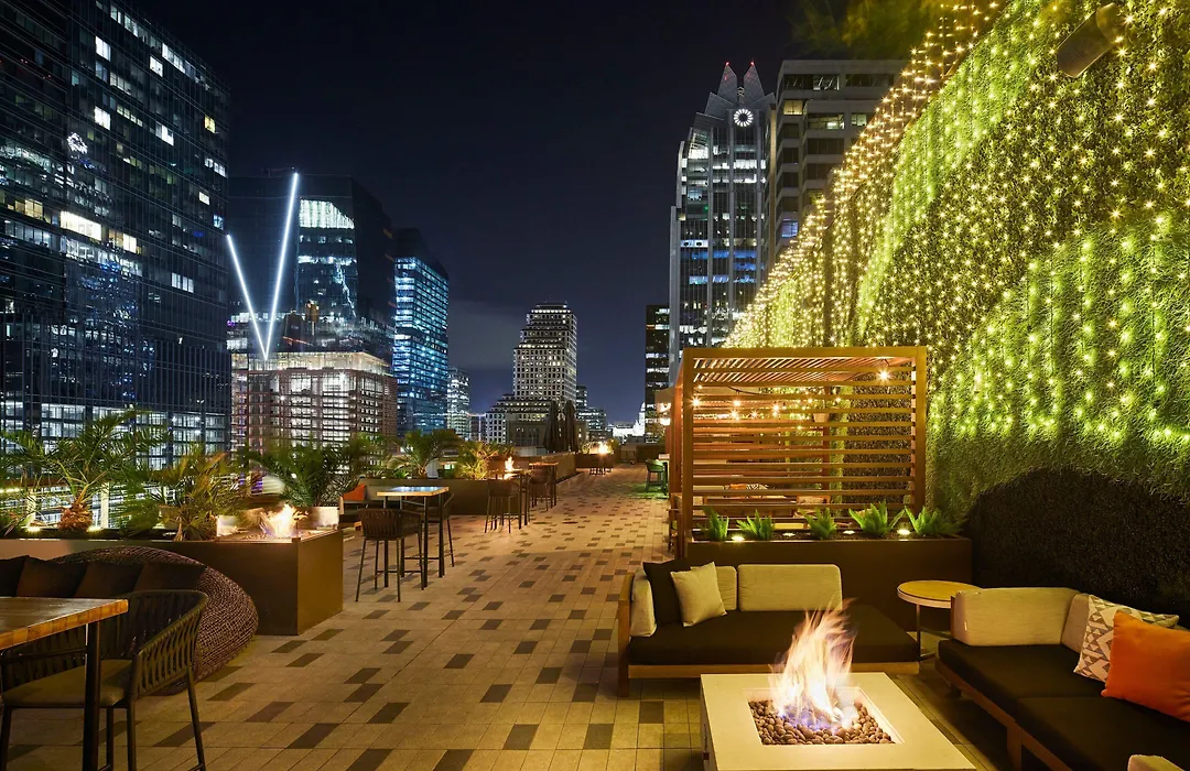 Dining options include Dean's Italian Steakhouse, which offers Wagyu beef and artisanal pasta, and the Burger Bar with unique toppings and side options. Edge Rooftop + Bar provides handcrafted cocktails and skyline views over Congress Avenue, complemented by a lively atmosphere and a pool bar.