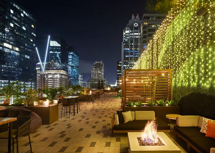 JW Marriott Austin is a 4-star hotel featuring luxurious accommodations and sophisticated amenities. Guests can enjoy an on-site spa, outdoor rooftop pool, and seven bars, including Dean's Italian Steakhouse and the Burger Bar, while its modern design incorporates Texas limestone and unique artwork.