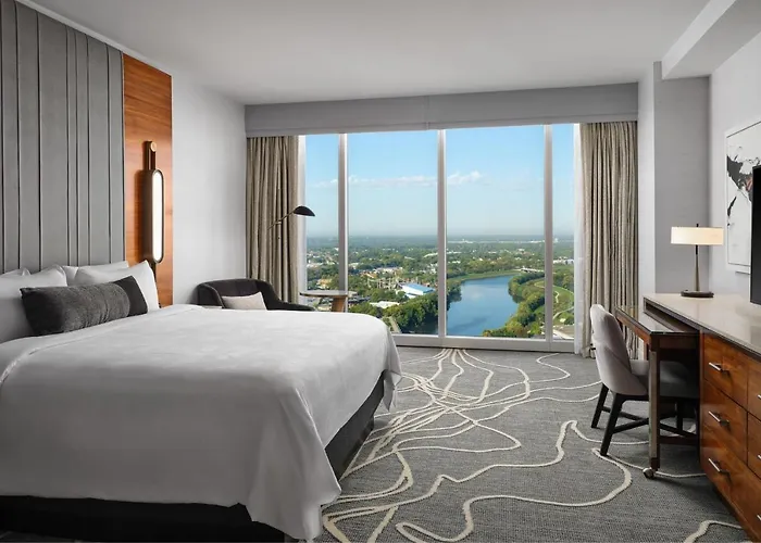 JW Marriott Indianapolis, a 4-star hotel with an 8.9/10 rating on Booking.com, features modern sophistication and luxurious accommodations. The tallest hotel in Indiana offers extensive meeting facilities and several on-site dining options, making it suitable for both business and leisure travelers.