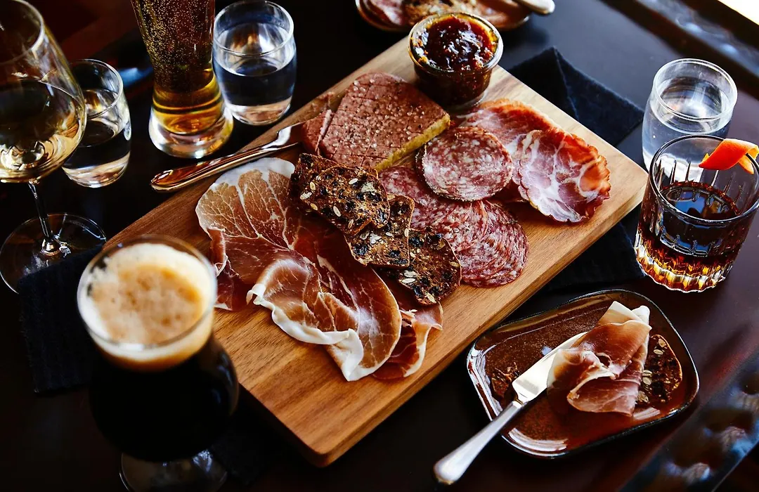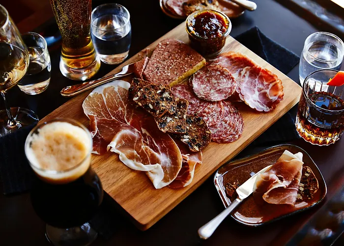 Dining options at Kimpton - Armory Hotel include the on-site restaurant serving seasonal fare sourced from local purveyors. Guests can enjoy a social hour with complimentary wine daily from 5 - 6 PM. The hotel also features the basement bar, Tune Up, showcasing live music four nights a week.