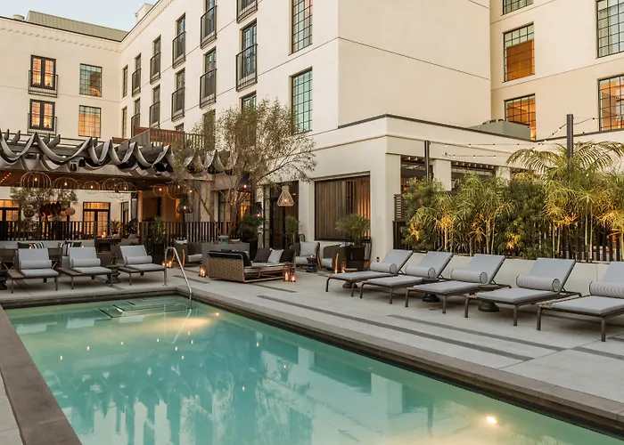 Kimpton La Peer Hotel West Hollywood By Ihg is a design-forward, 5-star hotel situated in West Hollywood's vibrant Design District. The hotel features 105 rooms, an outdoor pool, a 24-hour fitness center, and a variety of dining options, including the Mediterranean-inspired Ladyhawk restaurant.