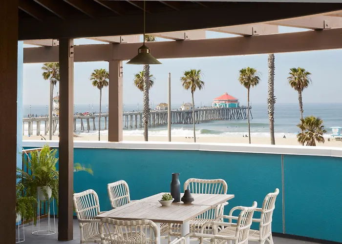 Kimpton Shorebreak Huntington Beach Resort, An Ihg Hotel is a 4-star beachfront property offering elegant accommodations and a vibrant atmosphere in Surf City, USA. Guests can enjoy a variety of dining options, including Pacific Hideaway, and a lively outdoor courtyard with fire pits and custom cocktails.
