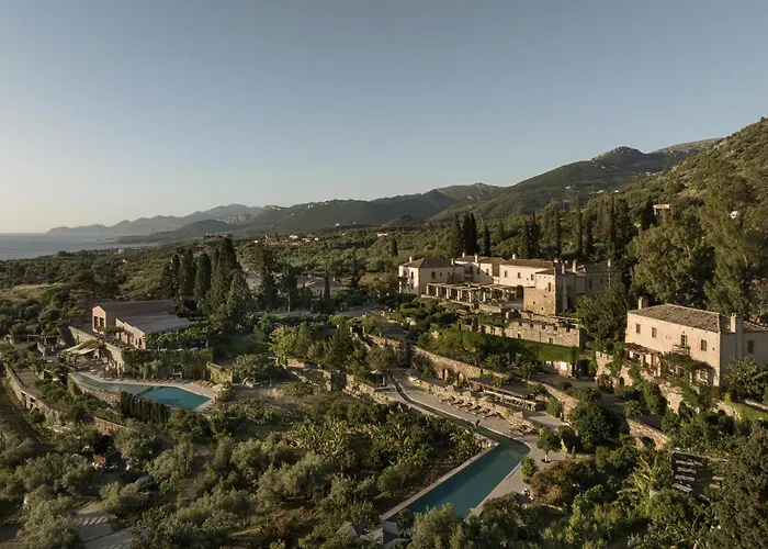 Kinsterna Hotel, a 5-star Monemvasia hotel rated 9.5/10 on Booking.com, offers a rich historical experience combined with modern luxury. Guests can enjoy a blend of Byzantine, Ottoman, and Venetian architecture amidst lush olives and vineyards, along with unique dining options and wellness facilities.