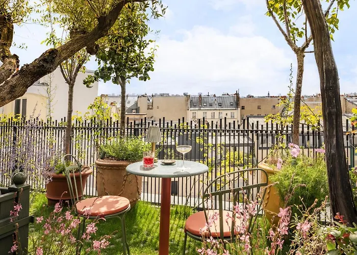 La Fantaisie, a 5-star hotel rated 9.3/10 on Booking.com, includes a lush garden and a rooftop bar, creating a unique urban oasis in the 9th district. Guests can enjoy modern amenities along with a continental breakfast and access to wellness facilities. This Paris hotel features a vibrant dining scene with a restaurant serving American cuisine.