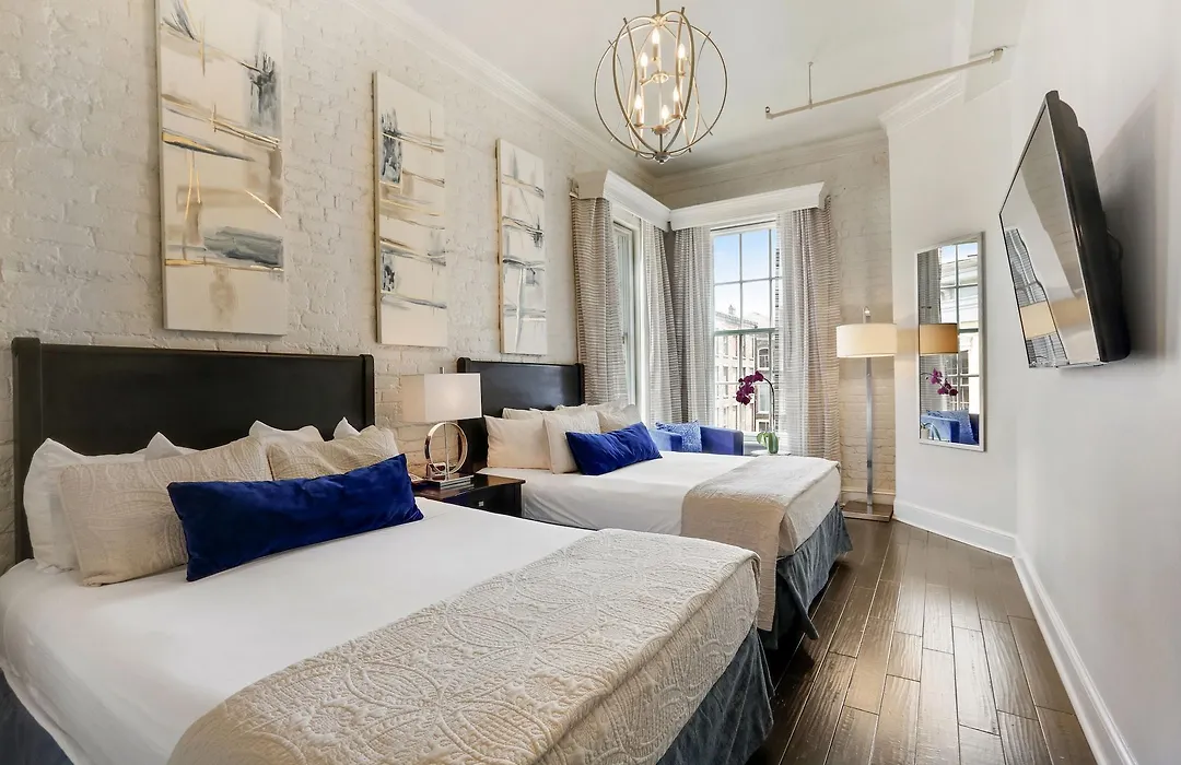 Guest rooms at La Galerie French Quarter Hotel include modern decor and classic hardwood flooring. The property offers intimate rooms such as the Standard King, the Standard Two Queen Beds, and a spacious One Bedroom King Suite with Sofa Sleeper, accommodating families and couples.