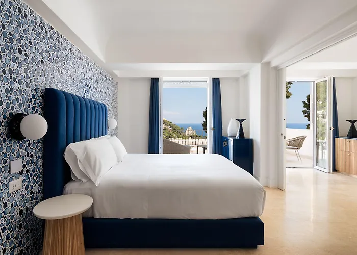Leisure amenities include a scenic outdoor pool and terrace overlooking the Mediterranean. Guests can explore Capri through guided tours and day cruises or enjoy sports activities such as snorkeling and hiking.
