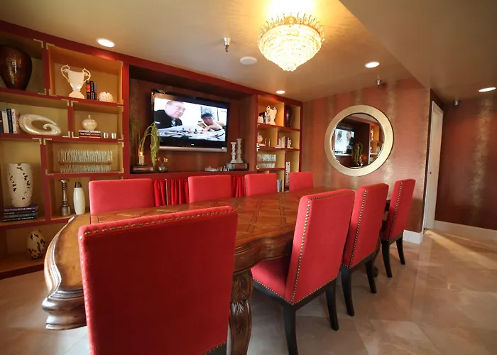 Suite options include a living room with a fireplace and a two-person Roman bathtub. Nearby dining options include El Torito and Fresh Thai, both within 0.5 miles. Guests can explore nearby restaurants for a variety of culinary choices.