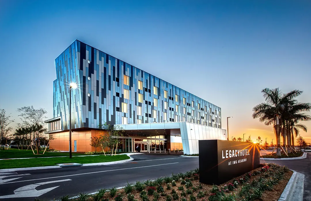 Legacy Hotel At IMG Academy is a contemporary boutique hotel designed for athletes and visitors. Offering 150 guest rooms, a heated resort-style pool, and modern event spaces, this 4-star Bradenton hotel accommodates both individuals and groups seeking active lifestyles.