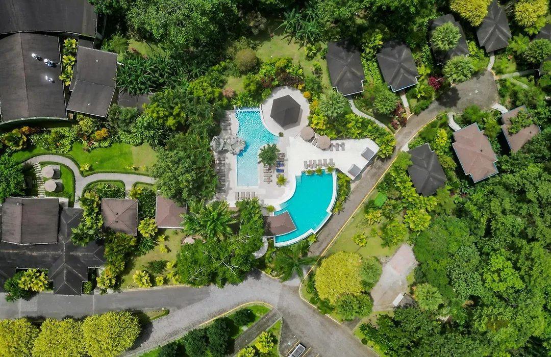 Hotel Lomas Del Volcan offers rustic wooden cabins with two terraces, allowing guests to enjoy views of the Arenal Volcano or tropical forest. This 4-star La Fortuna hotel features an outdoor pool, hot tub, and a restaurant serving local and international dishes.