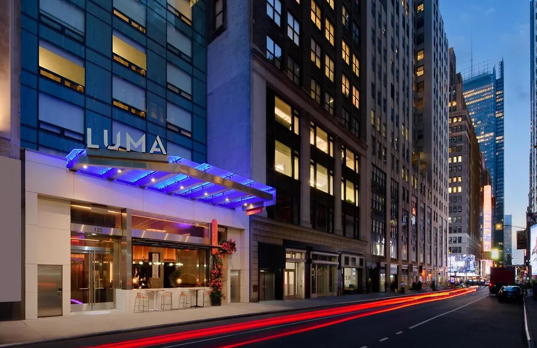 Luma Hotel - Times Square offers modern accommodations in a 4-star setting, combining stylish design with convenient amenities. Guests enjoy access to a fitness center nearby and dining options that include the AperiBar, which features a menu by celebrated chef Charlie Palmer. The hotel has a 9.0/10 rating on Booking.com and is strategically located near Times Square and Bryant Park.