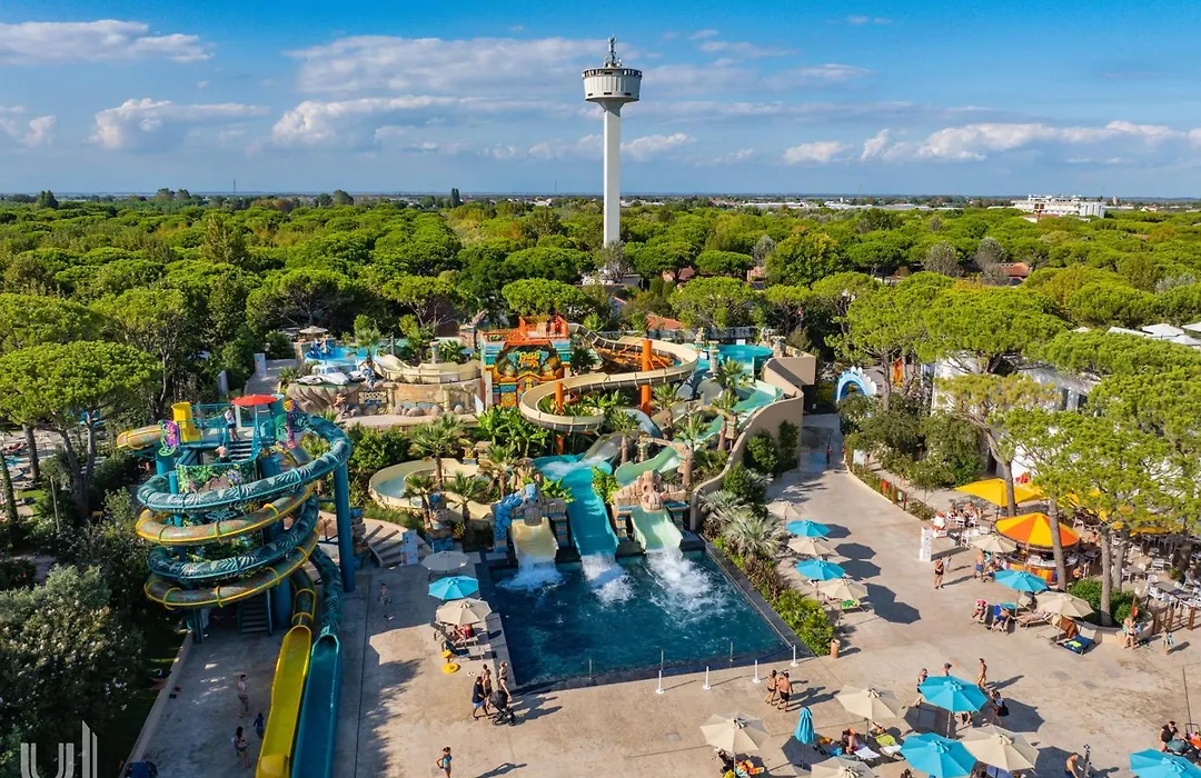 The camp offers extensive leisure facilities, including 2 outdoor pools, a marina, and a wellness center featuring a sauna and treatment rooms. For families, there are recreational amenities such as a water park and a pedestrian area designed for children to play safely.