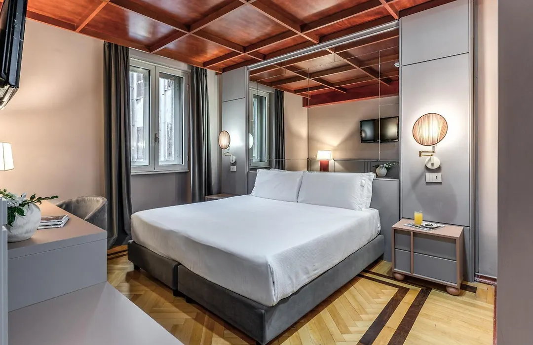 Leisure facilities include a relaxation room that overlooks the Termini railway station, featuring soundproof windows for a quiet environment. The hotel also provides a lounge area for guests to unwind with beverages. Its close proximity to historical sites like the Trevi Fountain and Borghese Gallery facilitates city exploration.