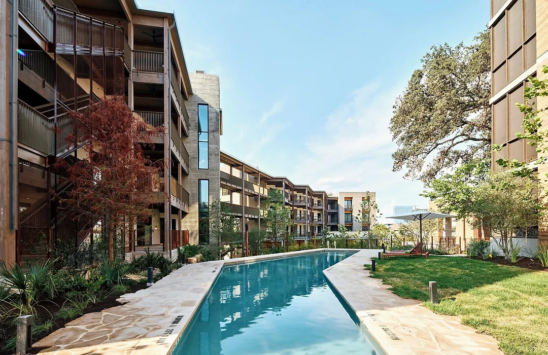 Hotel Magdalena, a 4-star Austin hotel rated 9.1/10 on Booking.com, features 89 air-conditioned rooms. This hotel includes a restaurant, outdoor swimming pool, and a bar set within a natural landscape inspired by Texas.