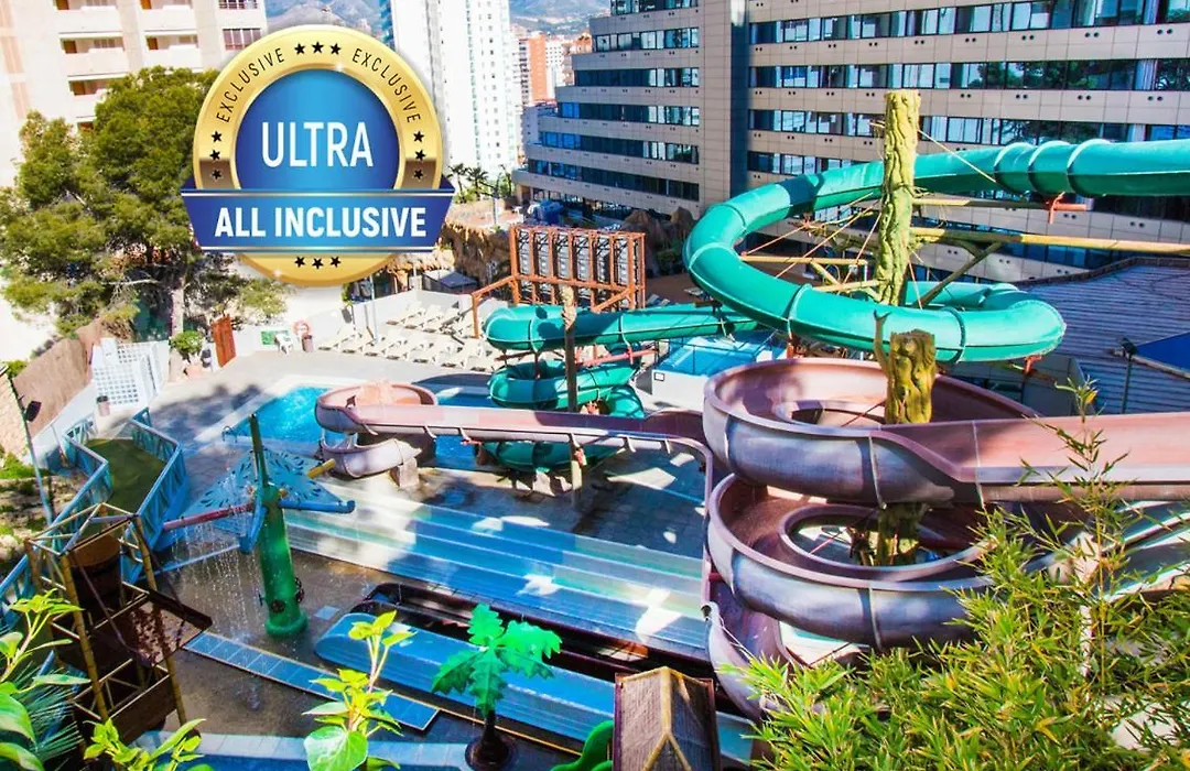 Rooms at Magic Aqua Rock Gardens are inspired by African themes, featuring mosquito nets, ceiling fans, and flat-screen TVs. Family accommodations with spacious layouts are available, including options with two queen-size beds and separate living areas. Some rooms offer views of Benidorm from furnished terraces.