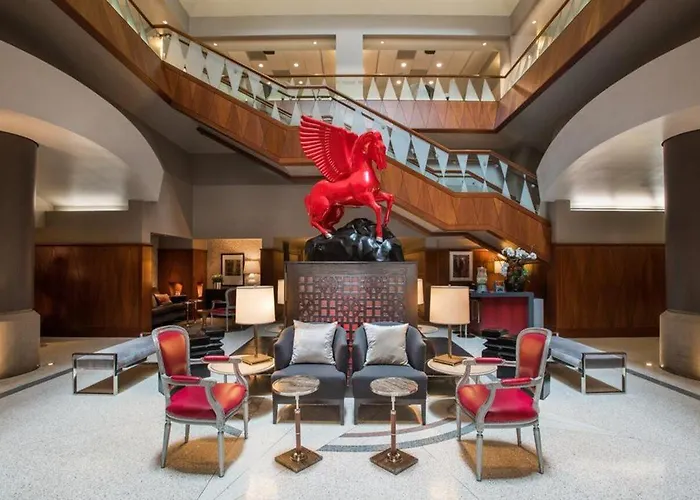 Magnolia Hotel Downtown Dallas, a 4-star property with a rating of 7.4/10 on Booking.com, features 325 upscale rooms and offers modern amenities. This downtown hotel includes over 8000 square feet of meeting space and a signature restaurant, The Lounge, serving contemporary American cuisine.
