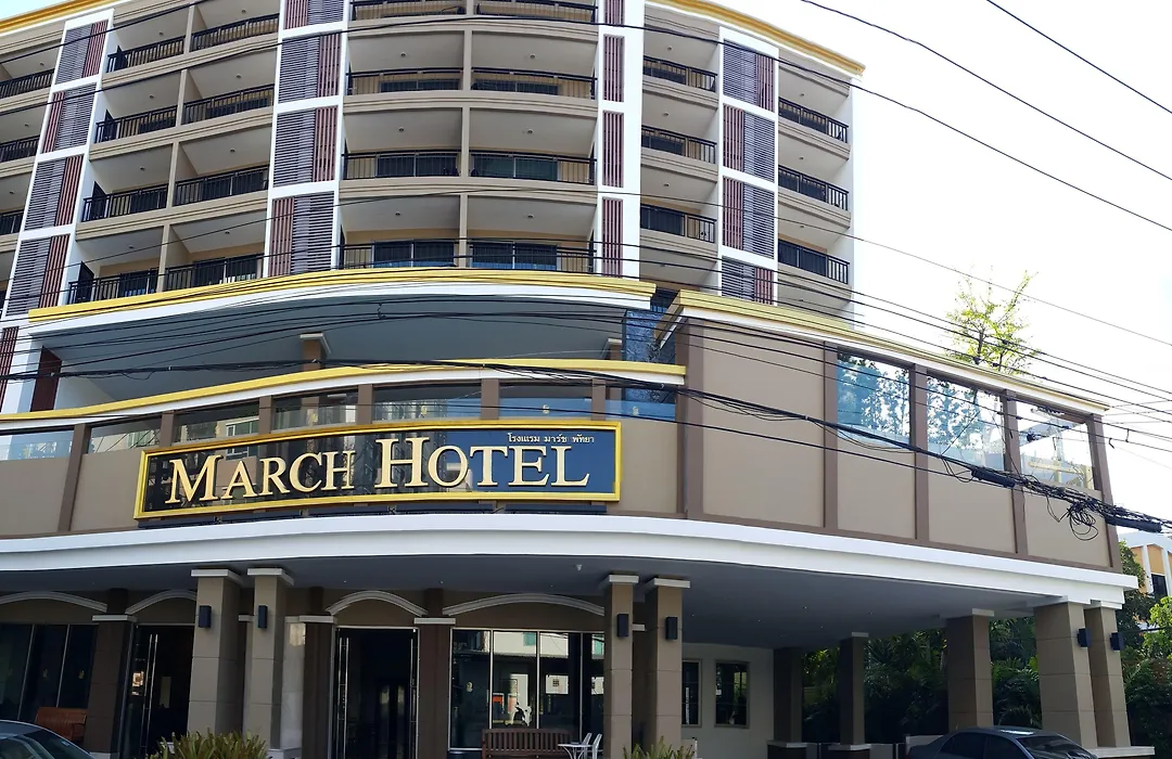 March Hotel, a 3.5-star accommodation, features an outdoor swimming pool, fitness center, and restaurant in Central Pattaya. Guests can enjoy WiFi access and a bar on-site.