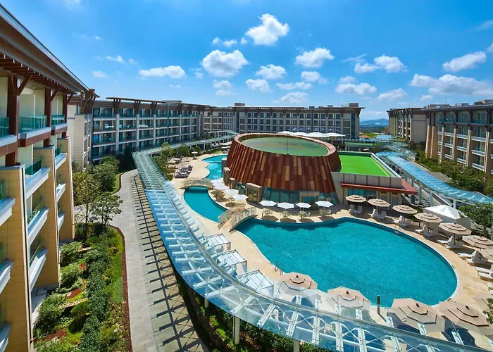 Jeju Shinhwa World Marriott Resort features a grand pool complex and a diverse selection of dining options. This 5-star hotel offers luxurious accommodations with picturesque mountain views and is a central hub for attractions like Shinhwa Theme Park and the Jungmun Tourism Complex.