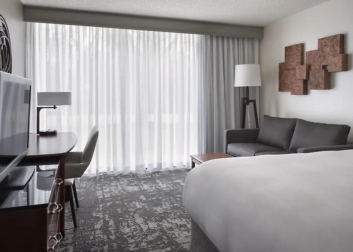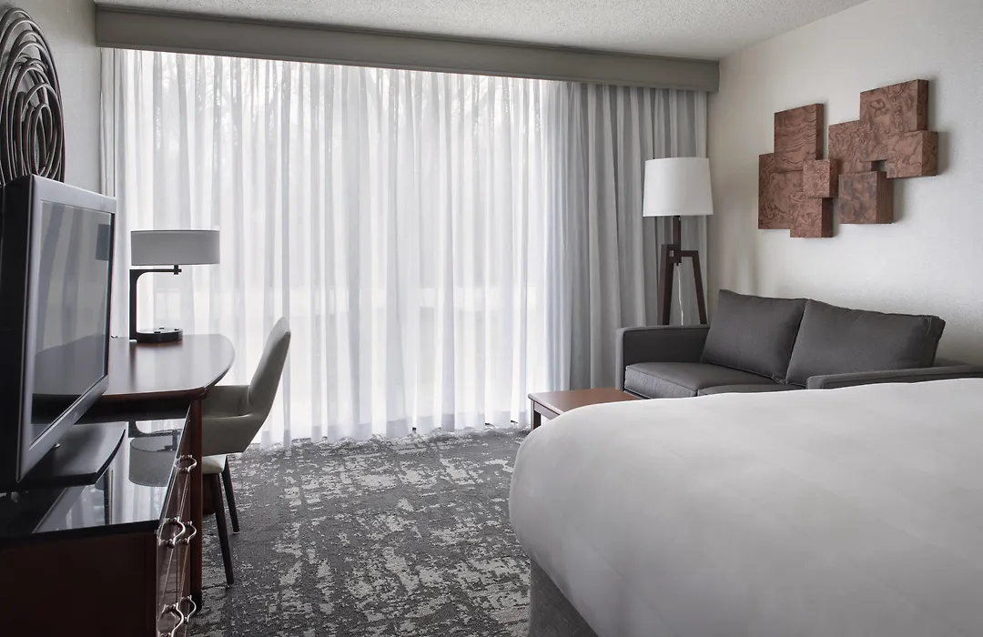 Rooms at Marriott Park Ridge feature large floor-to-ceiling windows and modern décor, ensuring a pleasant stay. Each guestroom includes premium bedding, air conditioning, and a flat-panel TV with premium channels. Suites are available, offering additional space and amenities.