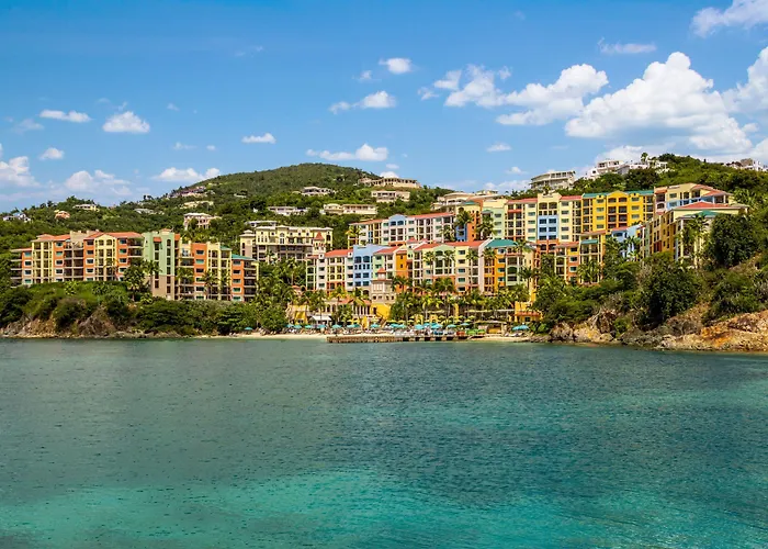 Marriott's Frenchman's Cove offers a premium vacation ownership experience reminiscent of a quaint village, surrounded by a secluded beach with views of Pacquereau Bay. This 4-star Estate Thomas hotel features 13 acres of beautifully landscaped grounds, an infinity edge outdoor pool with a waterslide, and family-friendly amenities.