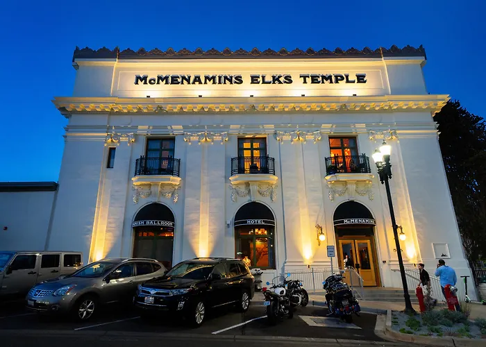 Dining options at Mcmenamins Elks Temple include the 565 Restaurant, where guests can enjoy a celebratory meal, and the Old Hangout offering handcrafted cocktails. The hotel also features a brewery tasting room and multiple bars throughout its seven floors.