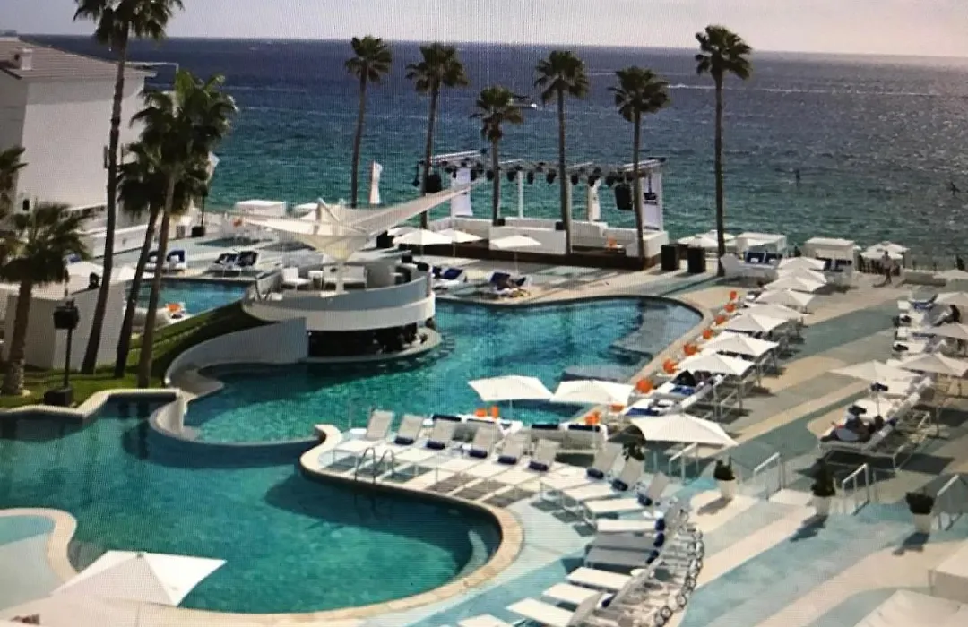 Guests can enjoy wellness programs at KORPO Spa, beach yoga sessions, and vibrant nightlife events at the hotel's beach clubs. The resort also features an outdoor pool and lounge with views of the Arch of Cabo San Lucas, perfect for relaxation and socializing.