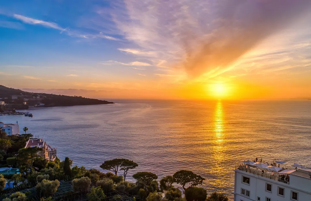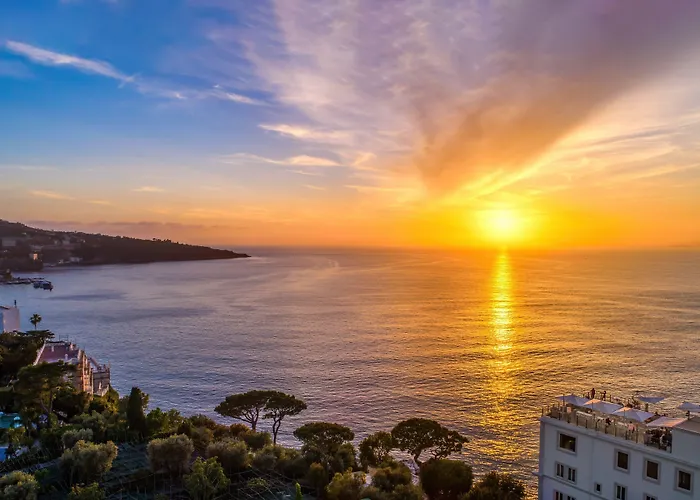 Hotel Mediterraneo, a 5-star boutique hotel rated 9.7/10 on Booking.com, features stunning views of the Gulf of Naples, upscale dining options, and direct access to Marinella beach. The hotel is known for its impeccable service, enhancing the experience of guests wishing to explore the Sorrentine Peninsula while enjoying a tranquil setting.