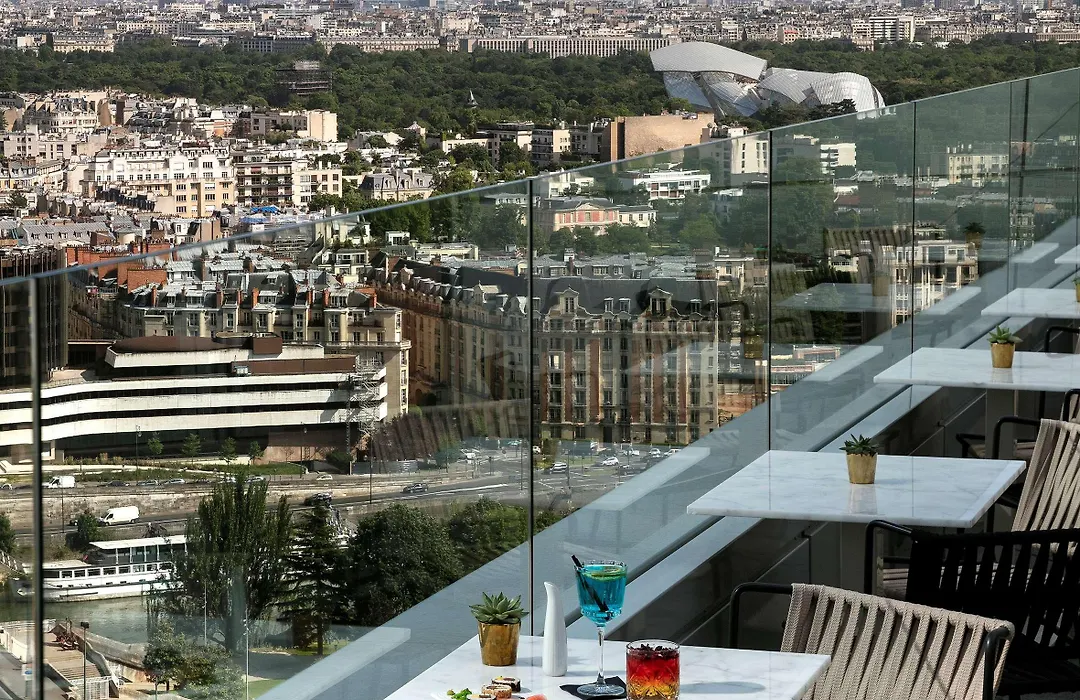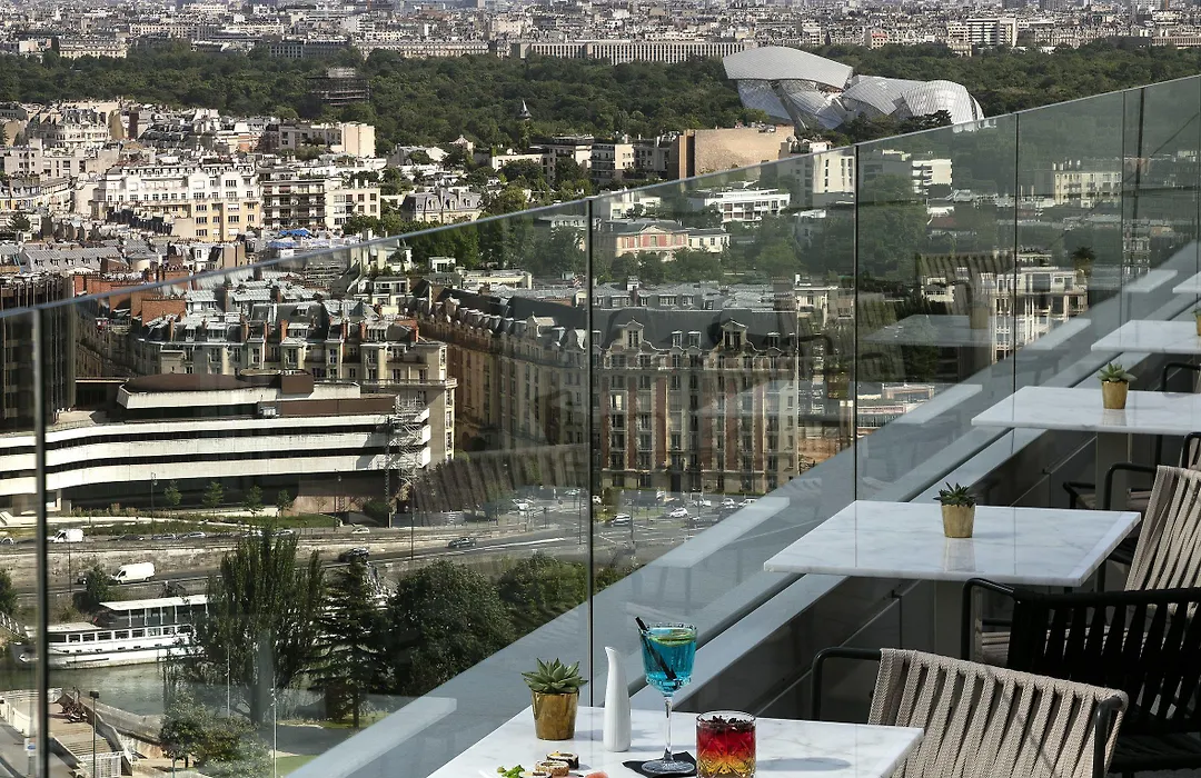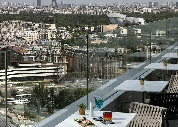 Dining options include Le Miroir, a French brasserie serving Mediterranean cuisine, and the informal Place Lobby Bar & Lounge offering typical French breakfast and snacks. The Skyline Paris Lounge & Bar on the 19th floor provides cocktails with stunning views.